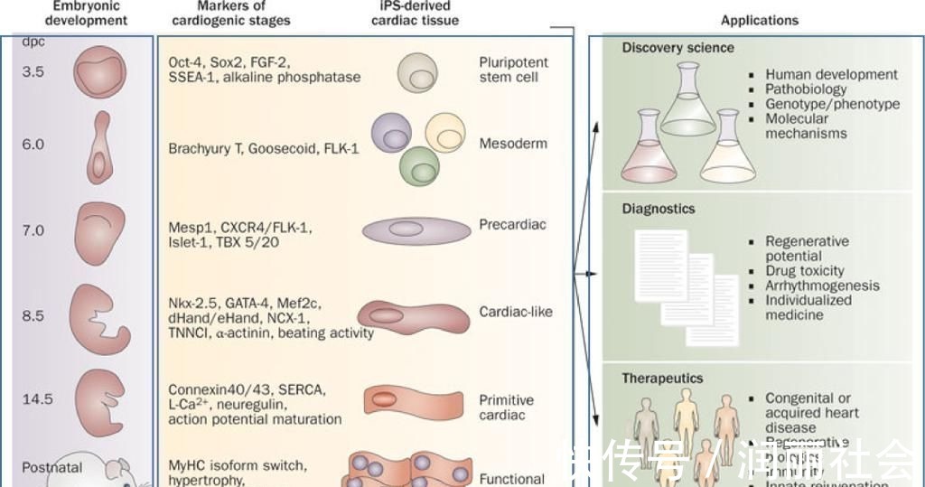 拿这张图为例,左边就是胚胎中的发育过程,对这个过程进行详细的研究,可以帮助我们在实验室里获得这些类型的细胞。